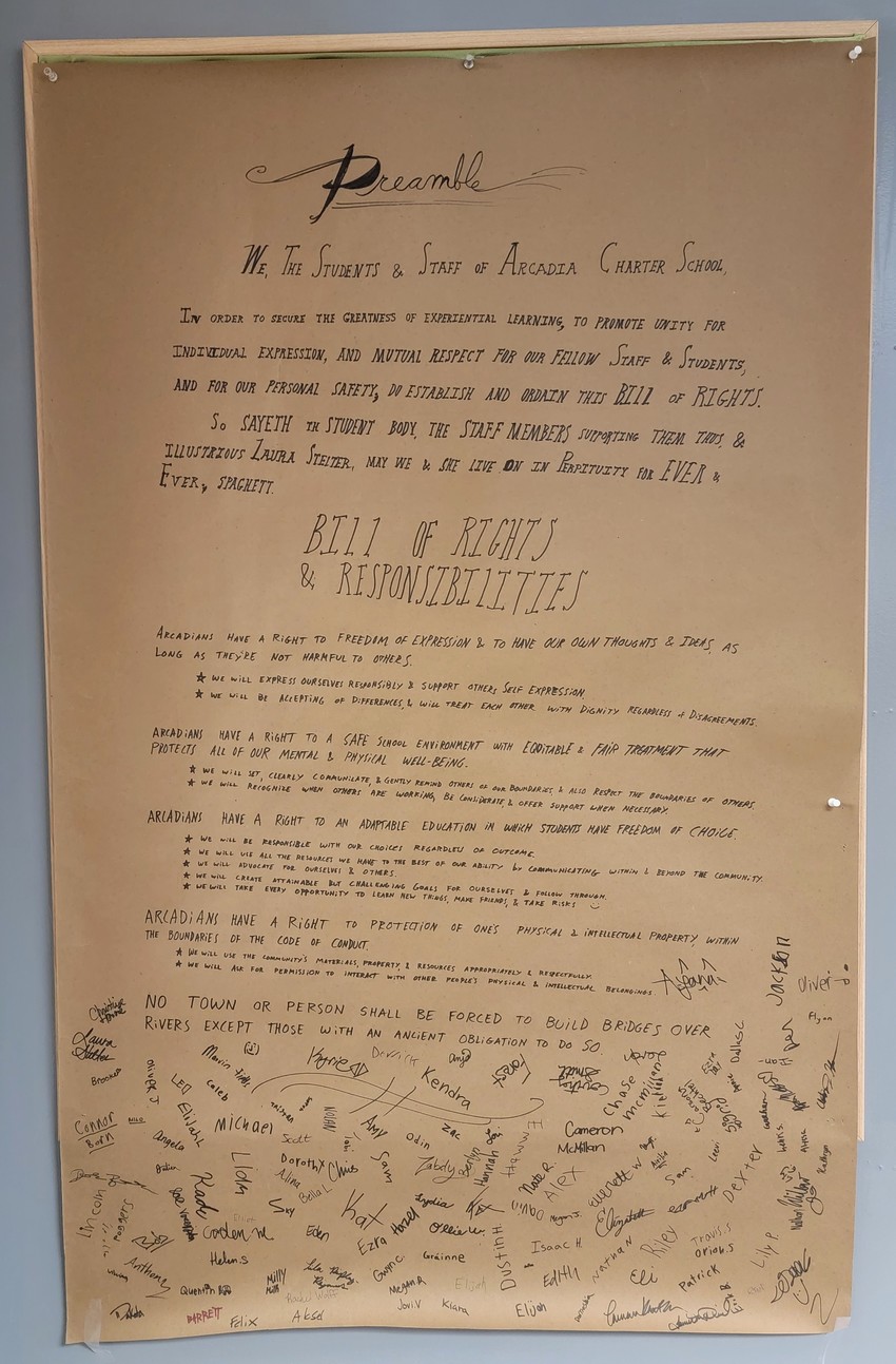 The first week of school is a special time at Arcadia. Students spend the week doing get-to-know-you activities and writing a social contract for how everyone will act and treat each other.